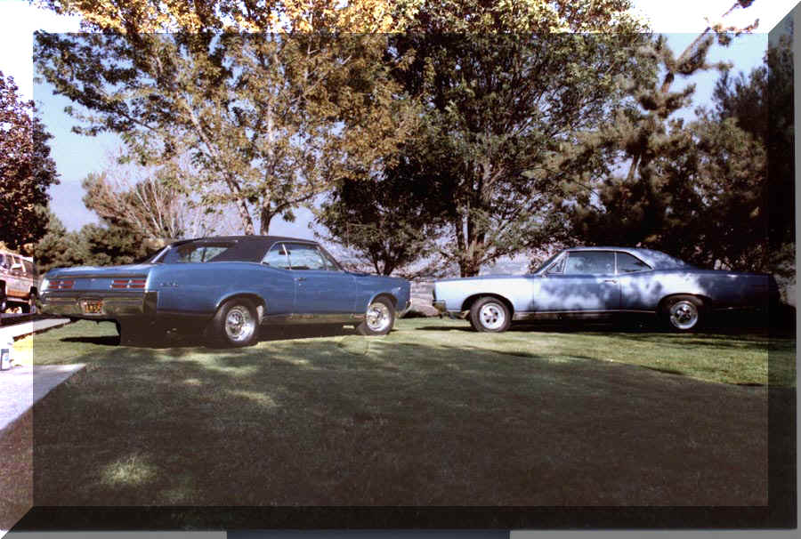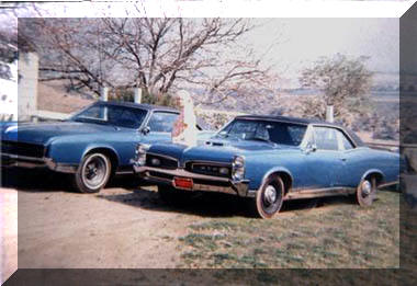 OK, not too many photos from 1967, but did come across this one showing the blue car with the paper plates. It had been picked up at the dealer the day before and taken up to Yucaipa for a break in drive. Next to the GTO was my dad's '67 Buick Riviera G ran Sport.