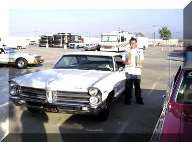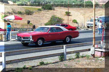 1965 Catalina 2+2 with the original 421 engine. We were lucky enough to purchase it from the original owner. This picture was taken at Los Angeles County Raceway when Mark was 16. Not one, but two drag racing trophies for him and the car. Since that time we have swapped to poverty caps and kicked the horsepower up a notch or two. Best with the 4,500 pound race weight beast is a 12.87 at 99.8 MPH at the High Performance Pontiac Magazine shoot out event. |
