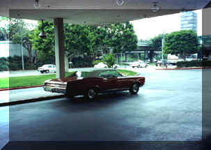This picture was taken at the Airport Hotel in Los Angeles. We were down in L.A. for a class reunion, and spent the weekend at the hotel. The valet parking staff was kind enough to watch out for the car. In fact, the GTO never moved from this prime location. |
